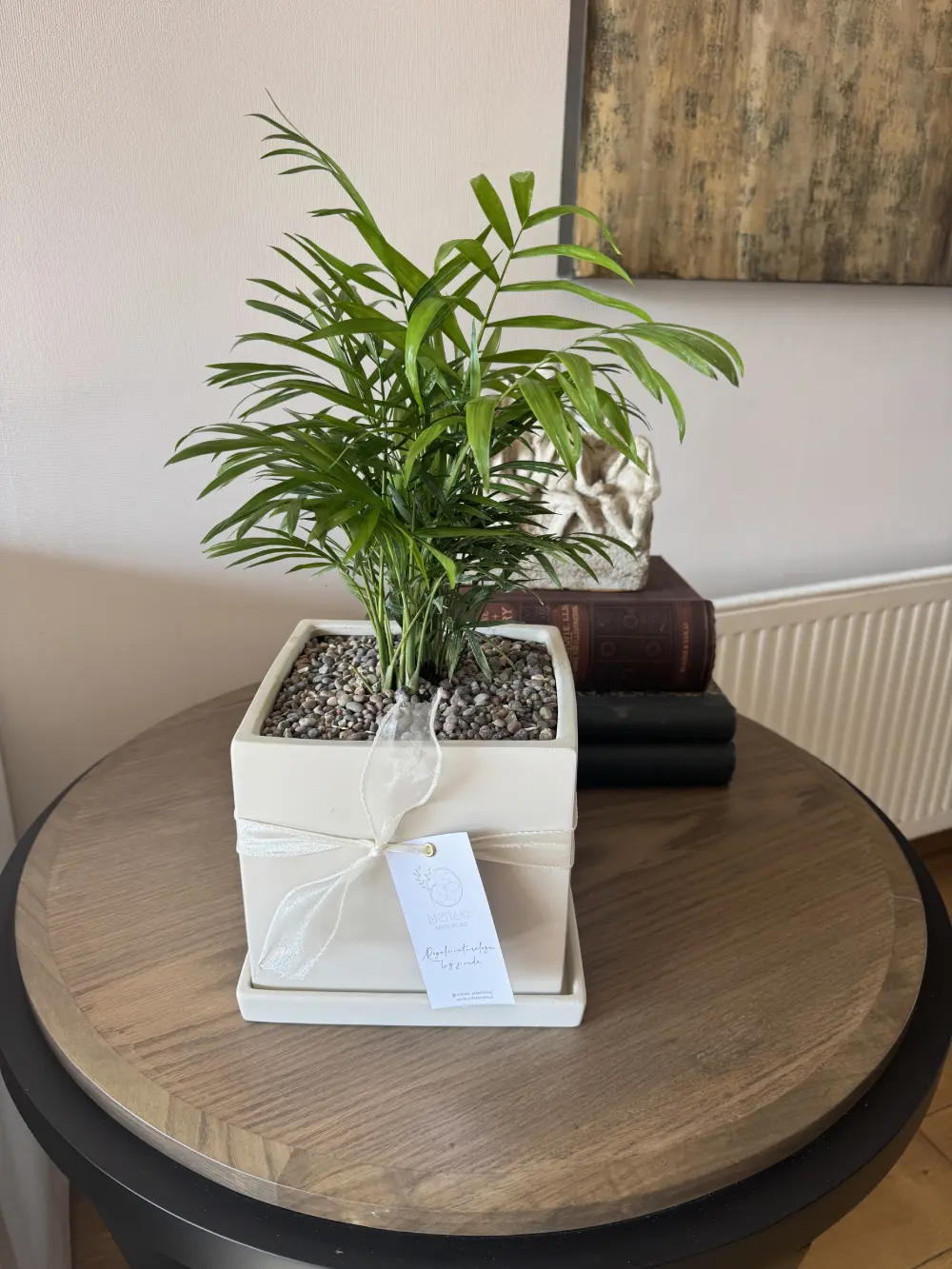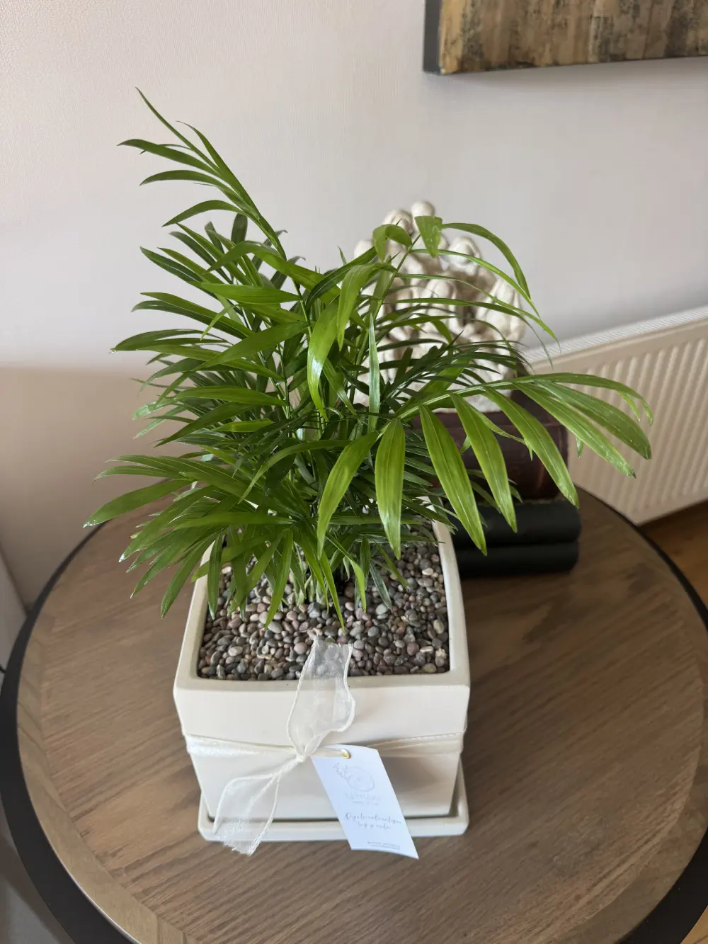 Delicada, elegante y adaptable. Esta pequeña palmera originaria de centroamerica tropical, crece lentamente y se siente cómoda en interiores con luz suave. Sus hojas finas y arqueadas aportan frescura y movimiento al espacio, creando una atmósfera de calma tropical. Es resistente y fácil de cuidar, purifica el aire, ideal para quienes buscan belleza sin complicaciones.